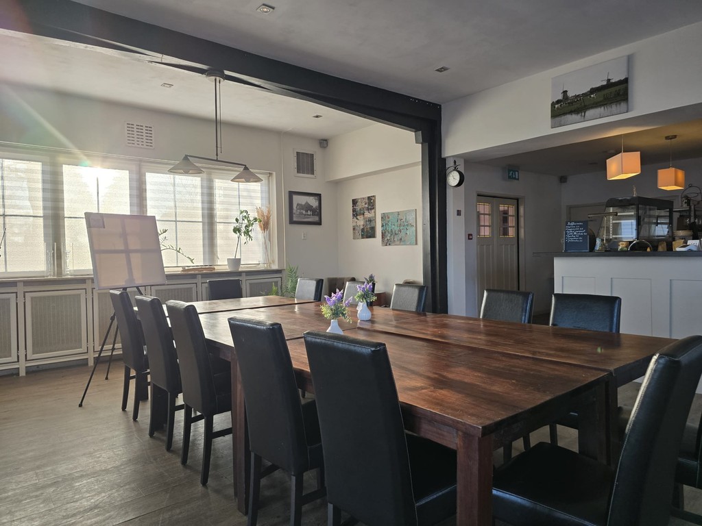 ’t Rietendak functioneert als vergaderruimte, maar biedt meer dan dat: een monumentale setting, kunst aan de muur en ruimte voor aandacht en gesprek buiten de gebruikelijke kantoorsfeer.